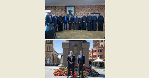 وضع معوّض، إلى جانب رئيس البلدية، إكليلًا من الزهر على ضريح الجندي المجهول تخليدًا لذكرى الجنود الذين سقطوا في الحروب، مؤكّدًا تقديره لقيم التضحية والوفاء التي تجمع بين الشعبين اللبناني والأوسترالي.